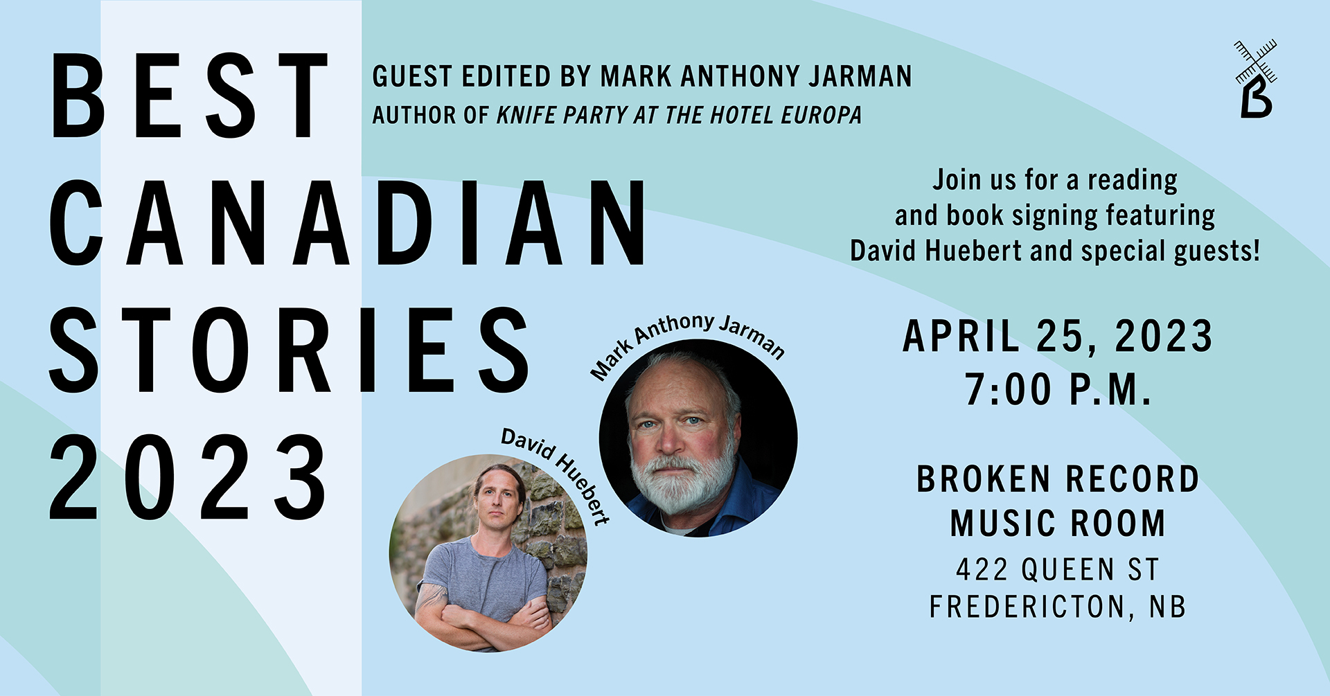 Join us at Broken Record Music Room to launch the latest edition of the BEST CANADIAN STORIES anthology featuring the best short fiction from Canadian writers. Hosted by Mark Anthony Jarman, featuring David Huebert!