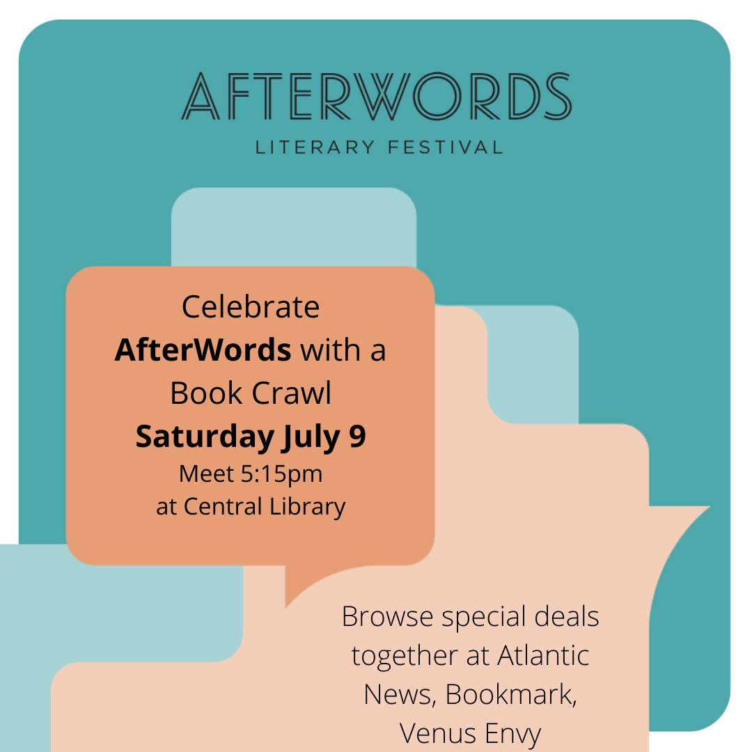 Celebrate the fourth annual AfterWords Festival with a Book Crawl. We’ll meet at the Central Library on Spring Garden Road at 5:15pm on Saturday, July 9. From there, we’ll head to Atlantic News, Bookmark, and Venus Envy where we’ll browse special deals, and hang out together. Come meet your fellow readers and celebrate our return to in-person programming. This free event is open to all, but be sure to register for your ticket in advance, so we can anticipate the pleasure of your company!