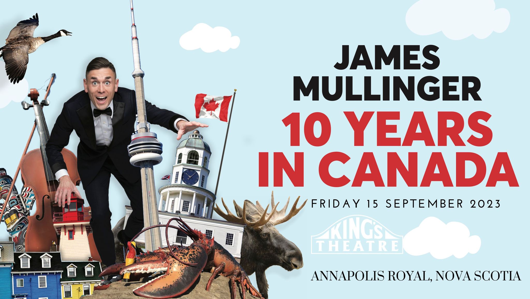 It’s now award-winning British comedian’s James Mullinger’s tenth year living in Canada! And after publishing his bestselling memoir Brit Happens – Living The Canadian Dream, creating his own magazine celebrating Atlantic Canada and creating and starring in New Brunswick’s first ever sitcom, he is back on the road with a full length stand up show sharing what he has learned about this special place over the past decade. Irreverent, honest, unpredictable but always hilarious, James is a Canadian citizen now and the gloves are off!