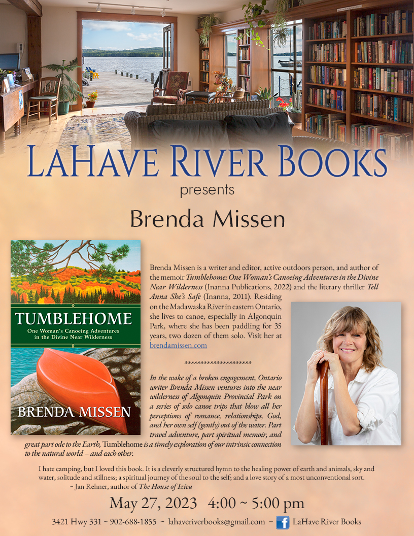 Please join us as Brenda Missen reads from her memoir, “Tumbledown: One Woman’s Canoeing Adventures in the Divine Near Wilderness”.