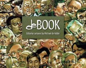 de Adder has been drawing the world’s foibles and woes in succinct, hit-the-mark cartoons for decades. To date, he’s collected his cartoons in six books, with a seventh set to hit the shelves fall of this year.